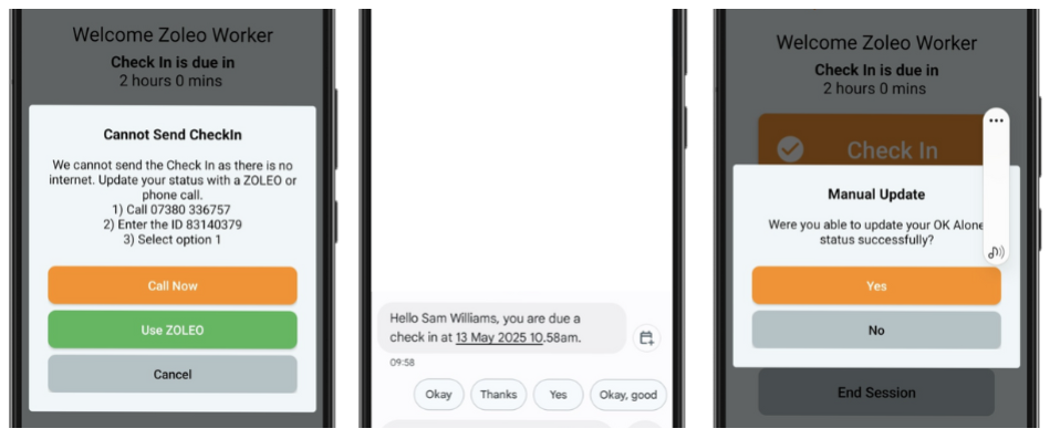 Unfortunately, countless worksites exist beyond the reach of stable mobile signal or Wi-Fi. Whether deep in forests, rural farmland, or inside industrial facilities, the lack of reliable coverage presents a serious safety concern. OK Alone’s new Low Signal Mode+ addresses this challenge head-on. When a worker loses internet connectivity, the app automatically shifts to alternative check-in methods—via SMS or phone call—ensuring that critical safety protocols continue without interruption.